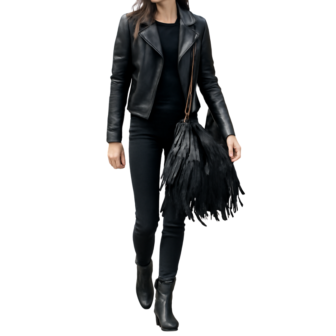 😍 Dès que je l'ai vue, j'ai su qu'elle devait être à moi ! Le cuir est ultra-doux et ces franges effet plumes sont incroyables !